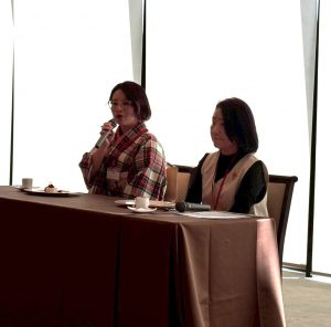 第二部として行われたFJPの人気企画である「会員に聞く!」では、お客様に有限会社きもの松川屋の木山会員と株式会社三煌の澤園会員をお迎えして、お仕事の内容や女性経営者として大切にしていることなどについてお話をお聞きしました。