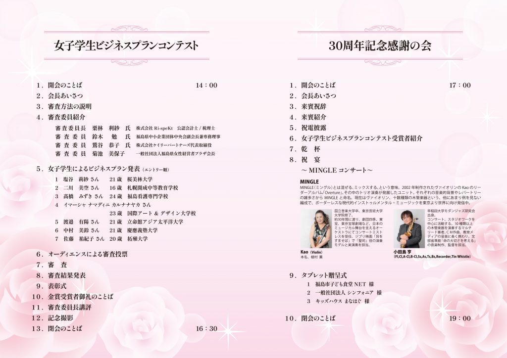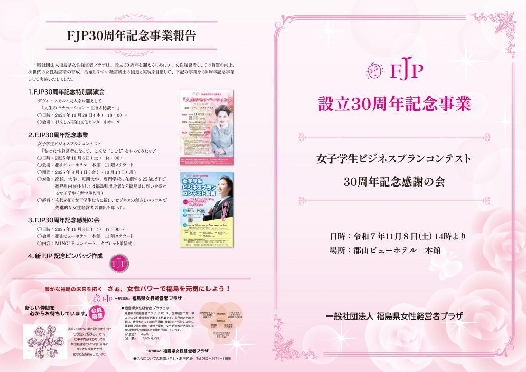 郡山ビューホテル本館11階のステラートでFJP30周年記念事業「女子学生ビジネスプランコンテスト」と「感謝の会」が開催されました。ご来賓の皆さまをはじめ、たくさんのOGの皆さまにもご臨席いただき、盛大に執り行われました。
